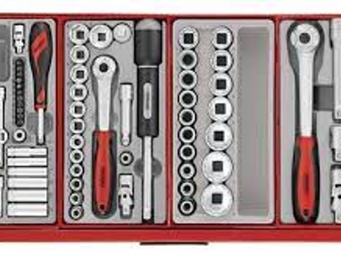 The TCMONSTER MEGA MASTER 140-piece service kit comes with a variety of tools, including sockets, pliers, utility knives, and a TC tray...